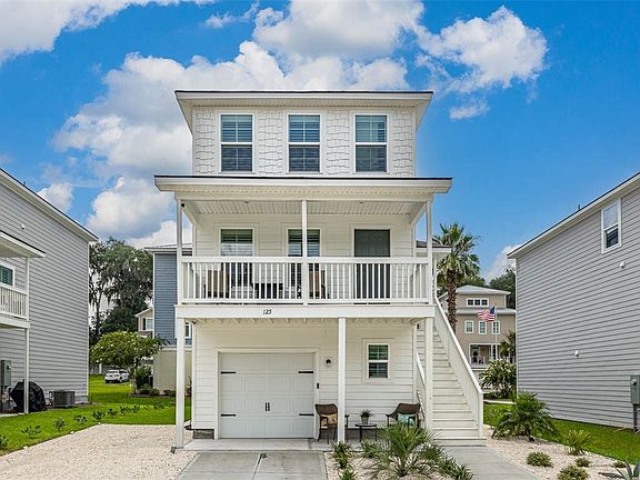 Located in the gated Cathead Landing Subdivision, this stunning 4-bedroom, 3.5-bathroom home, built in 2023, offers a coastal lifestyle nestled along the serene Cathead River. This like-new residence surpasses original construction, with the owners adding countless upgrades that lend the home a custom-built feel. The first floor includes an oversized one-car garage and a bedroom with a full bath, perfect for guests or an office. The second floor invites you into a spacious open-concept living, dining, and kitchen area, complete with a convenient half bath. The kitchen is a chef’s dream, featuring a custom backsplash, white shaker cabinets, granite countertops, and stainless steel appliances, including a state-of-the-art touch-screen refrigerator. Step out onto the second-floor porch to enjoy sunset views with a glass of sweet tea. Throughout the home, upgraded hardware, faucets, and mirrors create a sleek, modern design, while shiplap accents and plantation shutters add a coastal flair. The third floor houses the spacious owner's suite, that boasts a dual vanity and a walk-in shower in the primary bath. Additionally, the third floor includes two more bedrooms, a full bath, and a laundry area. Outside, the home features a custom fire pit, perfect for summer evenings. The Cathead Landing community offers amenities such as a pool, clubhouse, and dock, completing this exceptional coastal living experience.