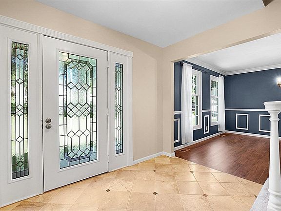 - Separate Dining, Breakfast Bar, Custom Cabinetry, Eat-in Kitchen, Granite Counters, Pantry, Double Vanity, Tub, Entrance Foyer