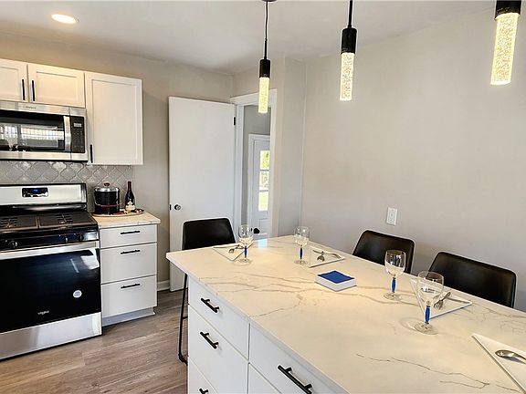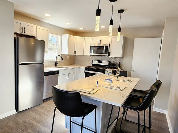 This sweet brick ranch is move-in ready. The airy, open-floor plan with newly installed gray, wood-like flooring is flooded with natural light only to be complemented by modern finishes and upgraded lighting. The sleek kitchen boasts NEW white shaker-style cabinetry, calacatta quartz countertops, arabesque backsplash, SS appliances, and a large island perfect for dining. There are TWO nicely-sized bedrooms and a renovated bathroom perfect for those who love first floor living. The lower level has a finished game room, updated full bath, and an additional room with closet that can be used as an office, 3rd bedroom, den, or whatever your heart desires. The party-ready patio accents the expansive tabletop backyard. With a NEW furnace, roof, windows, hot water tank, garage door with remote and front railing, there isn’t much to do aside from planning your Housewarming Party. Conveniently located near shops and restaurants.
