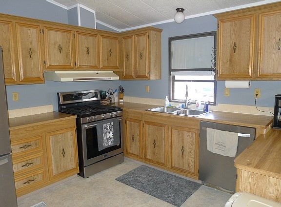 Very well maintained 3+ bedroom manufactured home on an over 12,000 sq ft corner lot! Home features a nice open kitchen, recently refinished sleeping room off the back of the garage, updated appliances, large master bedroom with master bath, and a nice open kitchen, dining living room area. Storage shed, room for a garden, and plenty of room for kids or dogs in the 12,606 square foot lot.