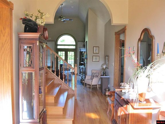 Custom home in private setting. Landscaped yard complete with garden shed with in-ground sprinkler system and 15x15 gazebo & workshop. 2 master suites & 3 additional bedrooms along with a separate guest home on the property. Finished basement with 9' ceilings and 10" poured concrete walls. Geothermal HVAC, well with water softener, distiller for drinking water, central vac. 6" exterior walls wood and gas fireplaces. This 42.83 acres m/l also features a spring fed creek & an abundance of wildlife.
