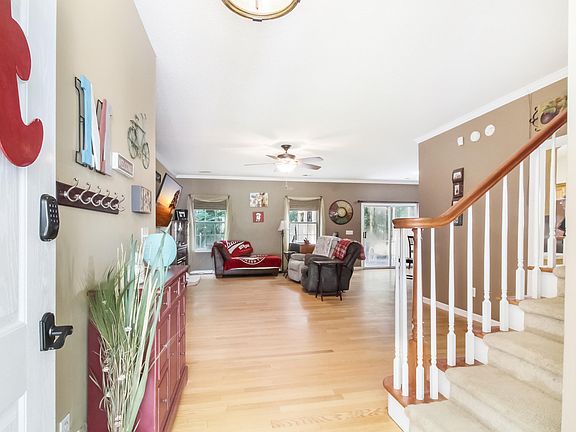 Welcome home to this lovely home in the ever popular Crowfield Plantation. Located close to shopping, dining and entertainment this home is a must see. As you enter the home you are greeted with a huge living room featuring cathedral ceilings and wood floors that extend through the downstair living areas. The kitchen is to the right with stainless steel appliances and a new backsplash and flows to the dining area and covered patio, To the front of the home you will find the first 2 bedrooms and main bathroom, To the rear is the owners suite with a walk in closet, master bathroom with dual sinks and a nice large tub. Upstairs is the 4th bedroom that is large and has lots of closet and storage space. At the rear of the home is the fully fenced yard that backs up to a wooded area