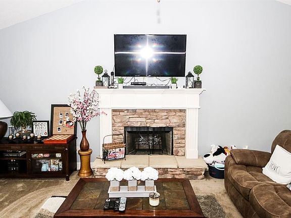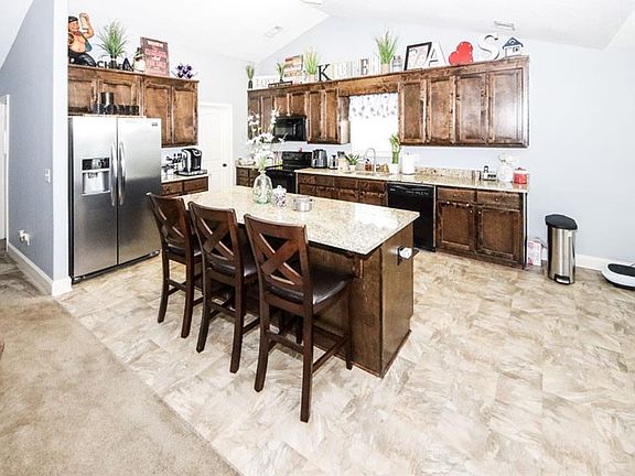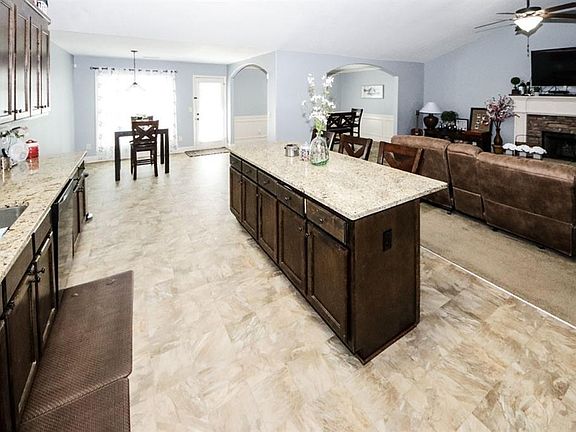 - Kitchen Features: Pantry, View to Family Room, Stone Counters, Kitchen Island, Solid Surface Counters, Cabinets White