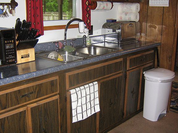 Very nice doublewide home just outside of town. Woodstove in living room heats the whole house. Laundry room and pantry off kitchen, lots of closets. Three bedrooms and one full bath. Full basement with workshop and finished room. Very large deck off rear of house, fenced yard, nicely landscaped. Some replacement windows, city water, 1000 gallon septic system and leach fields. House cannot be financed. Owner prefers cash, but may hold a very small mortgage.