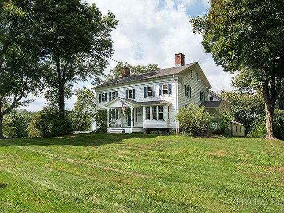A little over an hour to NYC and less than an half hour to New Haven, you can own a slice of history in this Iconic Homestead graced with strength and beauty that majestically sits on over 4+ bucolic sunny acres in the center of Easton. The Equestrian/storage 3 story barn will make any horse or animal lover smile. A superb floor plan with great living spaces along wide plank flooring complement the home. There are four distinctive fireplaces, extensive moldings and builtin's galore. The first floor includes large eat-in kitchen, laundry mud room, powder room, butlers pantry, dinning room with builtin cabinetry, fireplace & side door to porch, family room with wide flooring, built in window seat and gas fireplace, front to back living room with wide flooring and fireplace, gracious foyer leading to front porch. The second floor includes four good sized bedrooms & ceilings, one with fireplace, two full baths and one half bath, bonus room with back stairway to kitchen. There are out buildings and sheds for storage that complete the property. All this so convenient to amenities, 5 mins to shopping from route 59 & route 136 to lower Fairfield County & Merritt Parkway.
