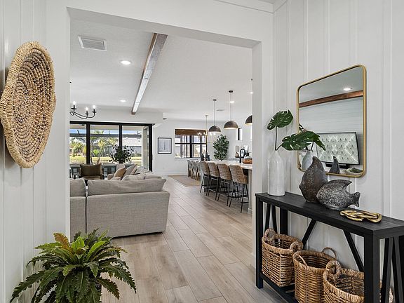 Spectacular sunset views over a large lake at this amazing 2021 built home by Divosta Homes. Custom finishes include: impact windows/doors with zero corner slider in the great room, 2nd floor loft with ability to add 5th bedroom or media room or home gym, extended garage with poly asporic flooring & additional outlets, stainless steel appliances, and quartz counter tops in kitchen. This unique home also has custom woodwork throughout, a screen enclosed saltwater pool, flush hot tub, water features, upgraded landscaping, outdoor lighting, gas line to grill, and much more. Sonoma Isles has great amenities like 24/7 gated security, a clubhouse, pool, fire pit, tennis court, pickleball court, playground, and ''A'' rated schools