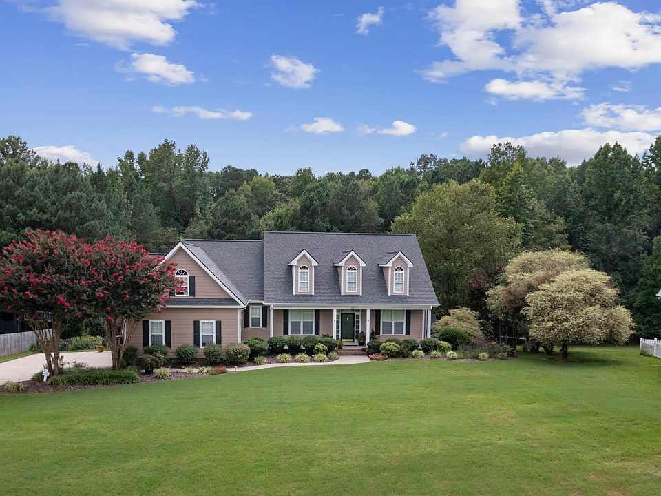 This stunning home in Ole Mill Stream sits on 1.46 acres of quiet serenity. Located 19 miles from downtown Raleigh but feels rural and secluded. One of the most peaceful settings you can ever find. Meticulously maintained home with gorgeous real hardwood flooring in the living room, formal dining room, kitchen and breakfast area. White kitchen cabinets and beautiful granite counters make a perfect transition to the spacious kitchen with like new stainless steel refrigerator and dishwasher. Brand new carpet has never been lived on. High vaulted ceilings and natural light provide amazing sight lines to the unbelievable setting behind the home. Large decking, firepit area, fenced yard and thick tree cover that extends far into the back of the property and beyond. Tons of storage inside the home and a great workshop in the backyard with new roof, electricity and air conditioning. Must see to appreciate the beauty and privacy this property provides.