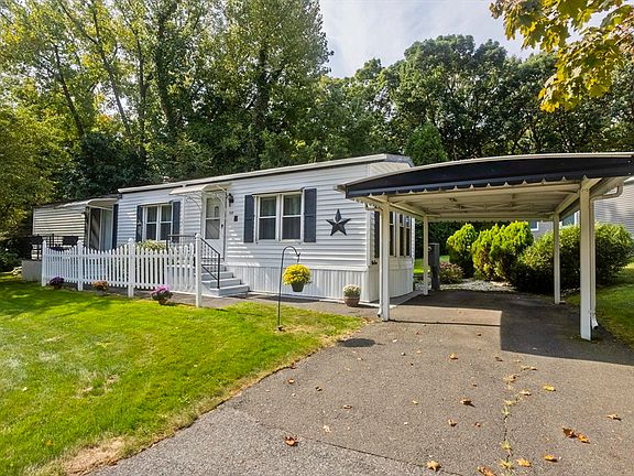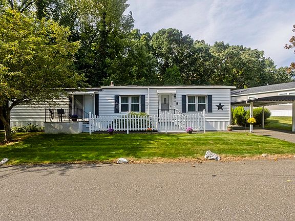 Welcome to this charming two-bedroom home in the vibrant Brush Hill 55+ community! As you pull up you'll immediately notice curb appeal and a carport that will keep the snow off of your car. Check out the front porch where you can enjoy your morning coffee while greeting friendly neighbors. Inside, you'll find a convenient laundry area just off the sliders. The cozy layout features a large, bright living spaces and a full bath, perfect for easy living. The freshly renovated kitchen features granite countertops, tile backsplash, and young appliances (~3 years). Through the second bedroom/flex space, you'll discover your private wooded oasis, ideal for relaxation and nature appreciation. SHHHH! Listen.. you might even hear the brook babbling in the back. Experience the best of community living in this delightful home! Search the property address in YouTube for a virtual tour, and schedule your showing today!!! Hurry to 125 Clayton, but prepare not to want to leave.