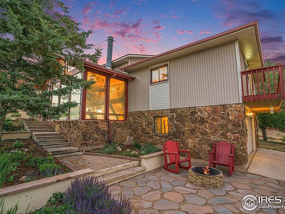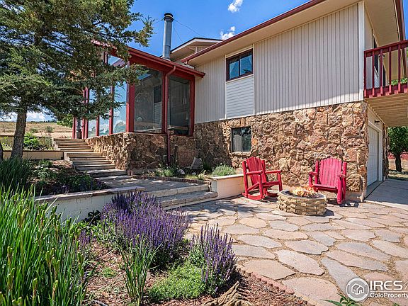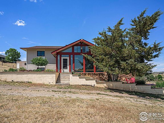 Rarely available in exclusive, west Loveland community - Horsetail Ranch Estates. This one-of-a-kind home features a custom A-Frame atrium entrance, beautiful views from every window, engineered hardwood floors on the main level, great room and highly functional kitchen with soft-close cabinets, quartz counters and an eat-in breakfast area that opens to the large deck. A private owner's suite with 3/4 bath, walk in closet, and balcony plus 2 additional bedrooms and full guest bath on the opposite side of the home complete the main floor. The lower level features a family room with stone walls and a wood-burning stove, 2 additional bedrooms and full bath as well as laundry/utility room and access to the garage. Seller is highly motivated - you will not find a move-in ready home with acreage in Loveland for this price! New furnace, 50 gal water heater, and AC in 2024. New windows and sliding door in 2017; New roof in 2015. USDA Eligible!