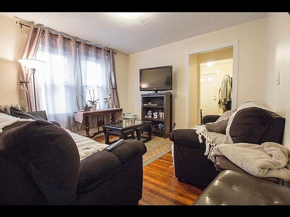This is a first floor property in a multi-family home. There are 3 bedrooms, 1 bathroom in this unit. There is coin-op laundry in the basement. Small backyard oasis, great for BBQs. Street parking. Gas heat, for which the tenant is responsible for. Electric and water included in rent. Close to bus routes. Move in date 10/1/22 Owner pays water and electric. Renters pay gas. Security deposit and first months rent required at signing. No smoking allowed. Street parking.