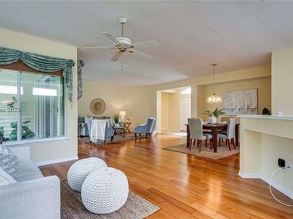Welcome home to this charming 2BD 2BA Bluffton Eastman home located on an oversized private homesite close to Town Square and the main Sun City entrance! This home has an open concept floor plan, 2019 HVAC, wood floors in the main living areas, laundry room with utility sink and a screen lanai.