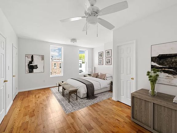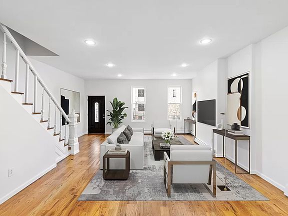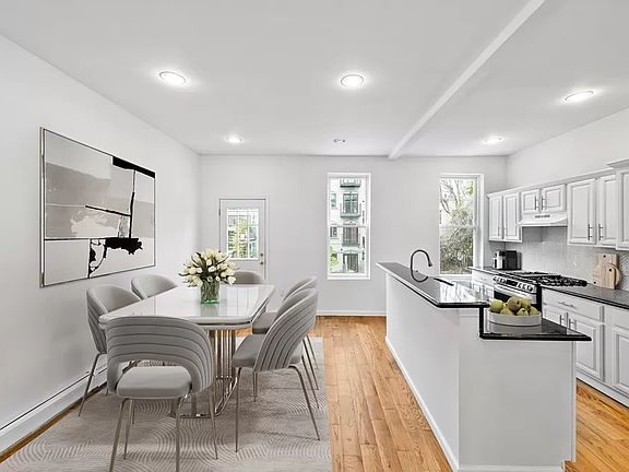 Enjoy modern townhouse living with a private backyard in this newly renovated multi-family home in quiet Bushwick. A pristine owner's duplex and a separate garden level unit offer income-producing potential or the opportunity to create a multi-generational home. Wide plank hardwood floors run throughout, while new sash windows let in an abundance of natural light. A lovely terracotta brown fac¸ade adds character and charm, and the spacious backyard has high fencing and gardening plots and is perfect for alfresco dining, entertaining, sun lounging, and grilling. The 4-bedroom, 2.5-bathroom owner's duplex begins with a floor-through living room, dining room, and kitchen with new recessed lighting, a laundry closet with a washer/dryer, and a convenient powder room. The kitchen overlooks the backyard and is equipped with an eat-in island, chic granite countertops, an elegant herringbone tile backsplash, custom cabinets, and high-end stainless steel appliances. All four bedrooms reside on the upper level of the duplex and have built-in storage. The primary bedroom has a pair of large reach-in closets and a private en-suite bathroom, and the remaining three bedrooms have easy access to a second full bathroom with contemporary hardware and finishes. One of the bedrooms also has a beautiful skylight. The garden-level rental unit has 2 bedrooms, 1 bathroom, and an open-concept layout. The corner kitchen has custom cabinets and stainless steel appliances, and both bedrooms have reach-in closets and easy access to a modern full bathroom with a deep tub. Situated in the eastern half of Bushwick, 125 Cooper Street is close to Ocean Hill and Brownsville and is moments from a variety of restaurants, cafes, bars, and shops. There are several playgrounds and schools in the area, and Rudd Skatepark and Irving Square and Saratoga Parks are also close by. Public transportation options include several local bus lines and the L/J/Z subway lines.