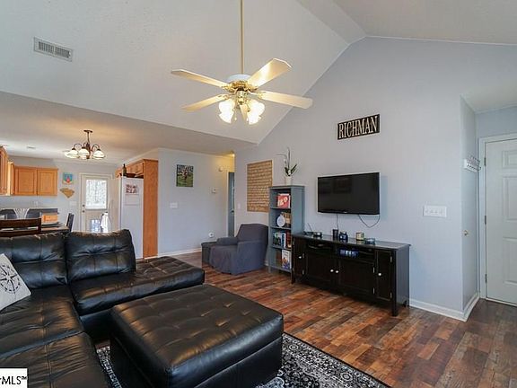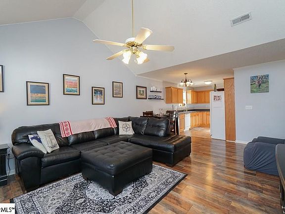 Charming one level home with 3/2.Immaculate condition with neutral colors and move in ready. Home features beautiful hardwoods and cathedral ceiling in great room with gorgeous ceiling fan that opens directly into the kitchen for entertaining. Large kitchen has plenty of counter space perfect for cooking and entertaining guest. Master Bedroom features trey ceiling with Master Bath and Carpet.Also, has two other Bedrooms with Carpet and a full bath to share. Relax on your deck, and enjoy the privacy with a fenced in backyard. Easy access to I-85, Downtown Greer, & Greenville Spartanburg Airport. Seller has warranty with Five Star Heating & Air....