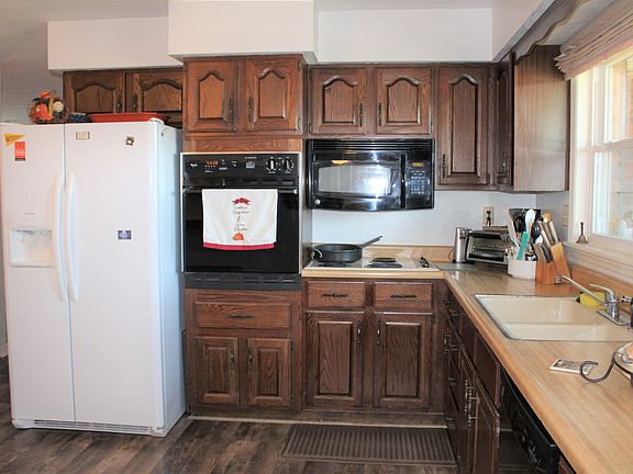 Wonderful neighborhood on the edge of town yet with city utilities and high speed internet available. Almost 1900 square feet of usable space. Great floorplan with a living room with large window on one end of home and family room with fireplace tucked in back on opposite end of home. Both living and family room are large in size. An eat in kitchen with pantry and closet with an adjacent formal dining room offers room for holiday get togethers. The extra large window above sink lets natural lighting in. Newer laminate flooring throughout. Replacement tilt-in windows for easy cleaning. 2 car attached garage. Exterior features are a private patio, storage shed and paved driveway. Roof replaced 2015. Heating/Cooling replaced 2017. Lots of storage and updates. Ready to move in and enjoy.