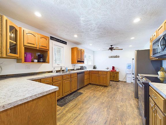 Charming 3-bedroom, 2-bath home on the edge of Mountain Home, just minutes from Norfork Lake and 5 minutes to Walmart. This well-maintained property features updated bathrooms and a stylish kitchen, tastefully decorated throughout. Enjoy the convenience of a walk-in crawlspace with a one-car garage underneath. The rustic 960 sq. ft. barn in the back is perfect for hobbies, and there's a cozy fire pit area for gatherings. With ceramic tile that looks like hardwood floors, this home is neat, clean, and offers privacy. Previously used as a vacation rental, it’s move-in ready and waiting for you to make it your own! Don’t miss out! Check out the 360 tour