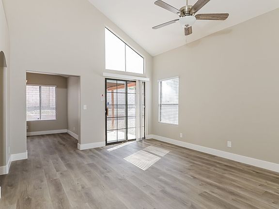 Please note, our homes are available on a first-come, first-serve basis and are not reserved until the lease is signed by all applicants and security deposits are collected. This home features Progress Smart Home - Progress Residential's smart home app, which allows you to control the home securely from any of your devices. Want to tour on your own? Click the "Self Tour" button on this home's RentProgress. Don't miss this Henderson, NV rental home with four bedrooms and two and a half bathrooms. Its fully enclosed backyard will delight your pets, and there's a roomy and partially-covered back patio, perfect for grilling and entertaining. Inside this two-story smart home, a light-filled living room with an extra-high vaulted ceiling, and an entry closet welcomes you. There's an arched doorway leading into the kitchen, which is a modern space complete with stainless steel appliances, an above-the-range microwave, and a handy double sink. Stylish wood-look flooring and soft-tone walls in the upstairs primary suite add style and function. There's also an impressive en suite bathroom with two vanity sinks, a closet, and a walk-in shower. You're invited to apply for your tour today!