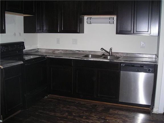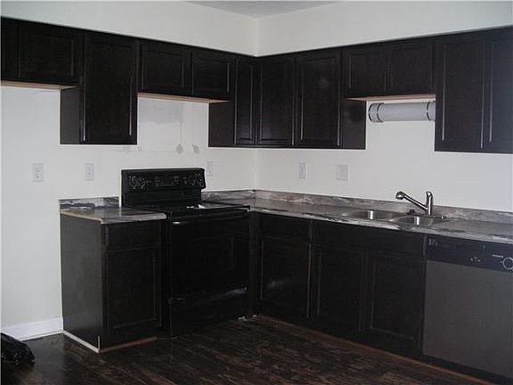 Full Brick Unit. Two spacious bedrooms upstairs. Updates include: carpet, tile in full bath, lovely dark wood kitchen cabinets, bath vanities, plank floors on main. Newer stove & dishwasher furnished. Selling AS IS condition, Needs some work.