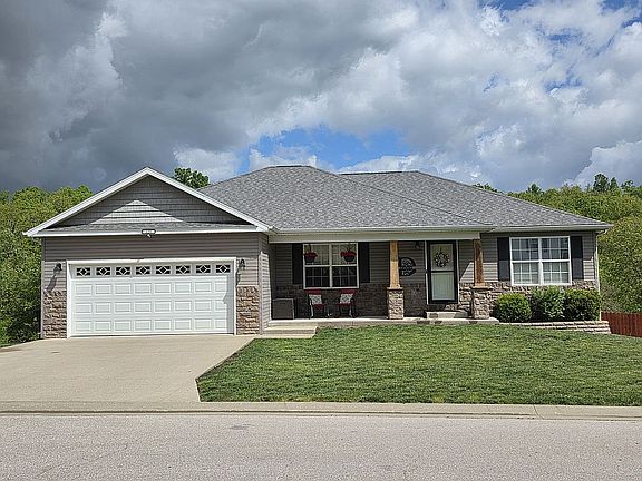 This CUSTOM home has UPGRADES throughout, while sitting on a PREMIUM lot over 2 ACRES, all within the Brush Creek Subdivision, close to post and inside City limits! Enter from the covered porch to the living room with UPGRADED laminate flooring, with OPEN floor plan to the custom kitchen and dining space. In the kitchen, custom backsplash, granite counters, center island and pantry make this the gathering space you'll want to be in. An oversized deck off the dining room gives unparalleled entertaining space to watch the sun set over the wooded acreage! Master en-suite boasts tray ceiling with dimmable LED lighting, custom tile shower, dual vanity and HUGE walk-in closet. Bedrooms 2 and 3 have been carpeted for comfort and provide ample closet space. Head downstairs to find 2 additional bedrooms, a 3rd bathroom, unfinished storage space and a small gym! Fresh interior paint throughout in 2021. Outside, enjoy the extended patio and fenced yard. Through the gate, adventure awaits! Sq ft and dimensions are approx.