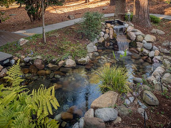 ZEN RETREAT! Well-maintained, Single Level, DESIGN-FORWARD home with DETACHED STUDIO & Carport (built 2014). Enjoy views of water feature from your spacious, MODERN KITCHEN with SS DACOR appliances. Engineered hardwood flooring throughout, nature views at every turn - CORNER LOT! Radiant floor heating in spa-like primary bath *TONS OF STORAGE* Sunroom roof replaced 2021. NEW WASHER AND DRYER Septic tank pumped 2023 (replaced 2010) SEALED CRAWLSPACE! Shed and work/storage room. Kitchen windows new 2020 Fenced-in garden area. Single step entry with no-step option. Close to Fearrington Village Center, Community Hiking Trails and minutes from Chapel Hill.