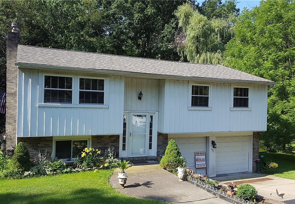 VERY COMFORTABLE HOME ~ LOT IS WOODED BEHIND HOME ~ SECLUDED LARGE REAR DECK & PATIO BELOW ~ UPDATES INCLUDE LAMINATE FLOORING IN LVRM & HALL, NEW LIGHTING FIXTURES, CERAMIC FLOORING, STAINLESS APPLIANCES (INCLUDED), WATER SOFTENER, BEAUTIFUL CONTEMPORARY BLINDS, NEW ROOF 2016, DRIVE RECENTLY SEALED, NEW HEAT PUMP 2016 ~ THE SHED REACHED FROM WOOD BRIDGE ACROSS SMALL STREAM IS ON THIS PROPERTY ~ SMALL LILY POND ~ LARGE FAMILY ROOM WITH SL DOORS TO PATIO BENEATH DECK ~ SPIRAL STAIRCASE TO DECK FROM SIDE YARD ~ FULL BATH OFF FAMILY ROOM ~ WOODBURNER FOR COZY WINTERY DAYS ~ EASY ACCESS TO ROUTE 8 ~ GREAT LOCATION ~ NEAR BUTLER COMMUNITY COLLEGE CAMPUS