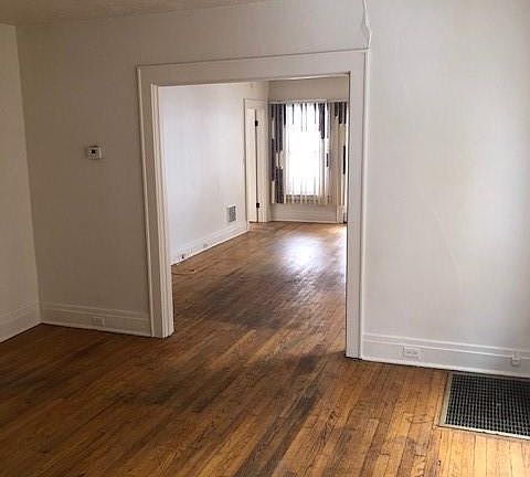3 bedroom, 1 bathroom downstairs apartment near East side. Newly refinished hardwoods throughout! Washer, dryer hook up in basement. Off street parking! ONE small pet, under 30 lbs. Tenant pays all utilities. One month security deposit, along with first month's rent required prior to move in.