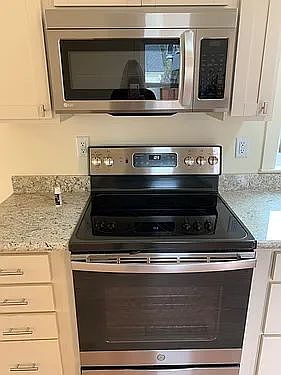 Bright and Airy Kitchen: Enjoy cooking in a sun-filled kitchen with granite countertops, stainless steel appliances, a built-in microwave, and a skylight that fills the space with natural light. The open layout flows easily into the living area, perfect for entertaining.