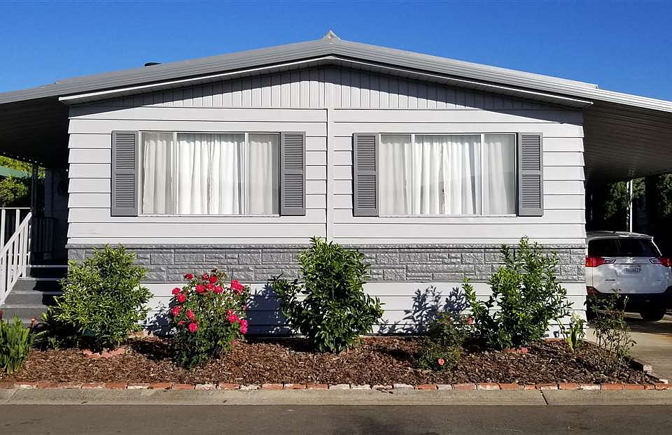 This manufactured home is in a superior location in Spanish Ranch II, a senior community. Buyer needs to be at least age 55, others over age 18. The affordable space rent is only $722.44 per month, plus utilities. All interior walls of the home are painted. Laminate floors throughout, except the bathrooms that have vinyl floors. The outside of the home was just painted in June 2018. And there is a wood burning fireplace in the living room. Eight seismic piers were installed under the home in August 2017. A new deck was installed in the back yard in June 2018. All park required upgrades have been completed as have the pest control repairs. Two large storage sheds are included. Plus there is a sliding glass door and deck off the master. Two pets are welcome. Dogs can be leash-walked in the park. Cash or conventional financing.