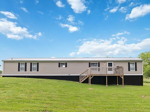 You'll be wowed stepping into this 16x80 newly remodeled home sitting on a certified permanent foundation with a 26x23 detached garage that's perfect for a boat, storage, or workshop. The garage is also equipped with electric and a storm shelter. This home has 2x6 studs and 2x10 floor joists along with a new roof installed just 6 months ago. Open concept with 2 bedrooms, 2 full baths, and all appliances including the washer/dryer. Enjoy evenings sitting on the nice sized front deck and take notice of the new steps recently built on the back two entrances of the home. This is the perfect starter home!
