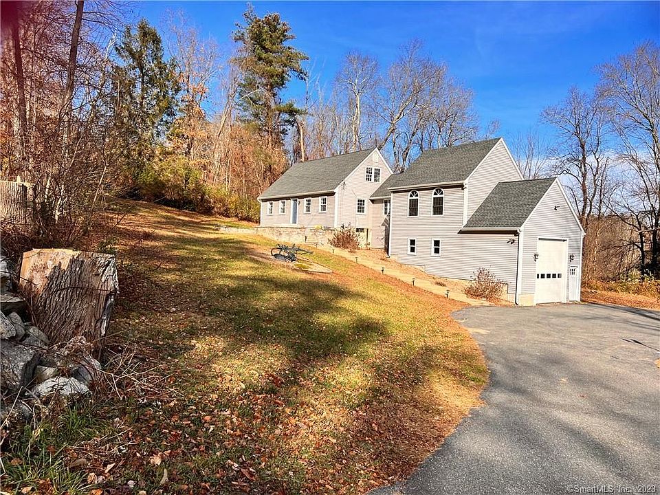 This oversized cape on tranquil Diamond Ledge Road in Stafford is move-in ready. Surrounded on two sides by a wooded lot and across the street from Shenipsit State Forest, your serenity is ensured. Inside, this charming home features brand new tiled floors in the kitchen and both baths, wide oak board flooring from a barn in the great room, living room, and dining room / den, and a main floor master bedroom suite with a jet tub, and hardwood. The upstairs bedrooms are spacious and bright. With a woodstove in the den and a working fireplace in the great room, the home is cozy and warm. The front of the home is inviting, with stone patio wall and a sizable Trex deck at the front door. The exterior features brand new vinyl siding and a 16 x 14 Trex rear deck that overlooks woods and ponds, with a nice sunset view. The enormous garage is not only suitable for a car, but includes ample work space. The one-acre lot, with trees lining both sides, is private Although private and quiet, 125 Diamond Ledge is close to shopping, mere minutes away, and downtown Stafford Springs with its restaurants and boutiques is just a little further. In addition, access to I-84 allows for easy travel to Hartford, Worcester, Boston, and New York. Come home to cozy, charming 125 Diamond Ledge Road in Stafford. new furnace and septic tank