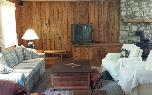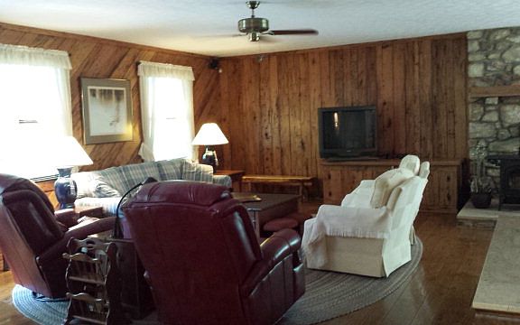 What a GREAT home! SO MANY possibilities! One level living with a huge heated area downstairs off the garage although accessed from inside the house. Great for an office or guest room with bedroom and half bath. Large back yard(double lot)TOTALLY private and surrounded by Hemlocks that the seller spent a lot of money to keep alive! A storage shed + a 12' x 14' heated and air conditioned shed in the yard. Wormy Chestnut walls, beautiful hardwood floors, spacious living room, yet very cozy, and well built and tight. Absolutely neat and clean. A whole house dehumidifier system keeps the house completely dry. 2 wood burning fireplaces! There is a 2 car over-sized garage, neat as a pin, with cabinets across the back and workshop space. At the side of the garage is the above mentioned finished carpeted 640 sf space, included in the SF, that has a fireplace and small bedroom, large closets and a large safe that is permanently bolted to the cement floor. Alarm system, speakers throughout, covered gutters. Furnishings negotiable. A LOT of house and flexible space for the money! Great house!