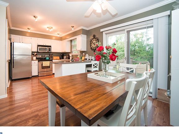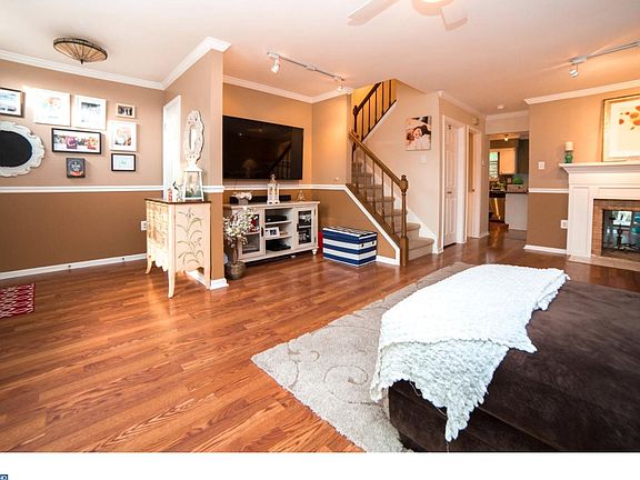Enjoy this tastefully updated 3 bedroom townhome conveniently located in the Court At Jamestowne. Enter into a spacious and well-maintained living room featuring a double-sided wood burning fireplace that can also be enjoyed in the kitchen and dining area! The spacious eat-in kitchen has upgraded stainless steel appliances, 2 pantry closets, and sliding door to the rear deck and yard. The second floor features the masters suite complete with full bathroom and shadowbox wainscoting along with the second bedroom featuring an entrance to hall bath. The third floor loft bedroom is filled with natural light from beautifully designed skylights. Other features include the finished basement, energy efficient replacement windows, brand new paint, upgraded floors and carpet, and ceiling fans throughout. There is ample closet space and plenty of storage throughout the home. Within walking distance to park with playground, fitness centers, and restaurants, The Court at Jamestowne is just minutes from a wealth of dining, entertainment, shopping, and transportation choices. Conveniently located near the Plymouth Meeting Mall, the Pennsylvania Turnpike, Routes 476 and 202. Maintenance free community provides exterior upkeep, landscaping, trash removal, snow removal and lots of parking.