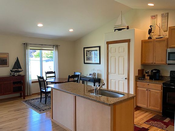 Very nice rambler situated in a safe and clean golf course community. Home was built in 2007 and has many upgrades. The interior is very nice with a open floor plan and the landscape is beautiful with in-ground sprinkler system. 27 hole golf course with restaurant and bar sits just a minute away walking. Brand new heat pump. Central vacuum.