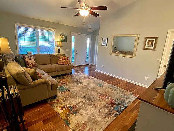 Located in the River Glen neighborhood, this is a wonderful family home with great outdoor features including a fenced-in yard, covered back deck, fire pit and large paver patio perfect for outdoor dining. The main level of the home is 1432 square feet while the finished basement offers an additional 415 square feet of heated living space. The large, covered front porch with rustic board and batten shutters invites you into the open living space. This home offers a split-bedroom floor plan with one side of the home featuring a spacious master suite with vaulted ceilings and the master bathroom having separate vanities and walk-in closet. The other side of the home has two other bedrooms and an additional bathroom. The living area has vaulted ceilings that flow into the galley kitchen which offers beautiful cabinetry, granite countertops and stainless steel appliances. The dining room leads onto the covered back deck which oversees all of the functional outdoor spaces. Two car garage and finished basement make room for lots of storage. The finished basement of 415 heated square footage makes for an excellent family room with an additional half bathroom. Over $11,000 worth of retaining walls help to organize the yard spaces and maximize the acreage. The back of the property finishes up with a tranquil creek which adds to the outdoor scenery. Surrounding tree lines provide privacy. In a desirable neighborhood this beautiful home will go fast!!