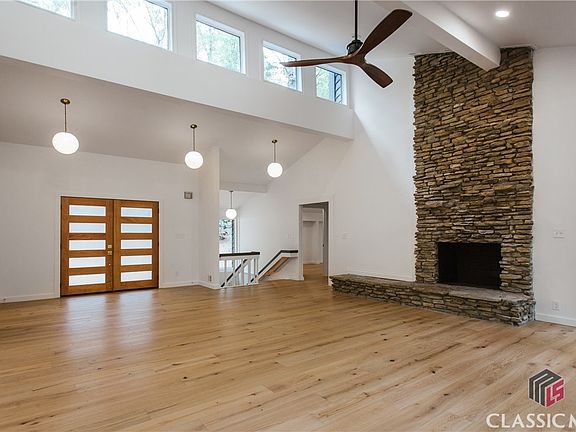 Incredible renovation that will offer buyers one of the most unique and updated homes in fabulous Glenwood. This home was lovingly renovated in 2023 to be an owner-occupied home, but the seller's plans changed, and now this fabulous opportunity can be yours. This home is located on an incredibly special street with tons of privacy. Walking into the front door is a vaulted ceiling with a huge stacked stone fireplace and floor to ceiling windows that overlook the wooded backyard where you'll be able to spot lots of wildlife. The kitchen is open and boasts brand new custom cabinetry, commercial grade appliances with dual fuel range, a large pantry with custom shelving, and beautiful lighting and fixtures. The main level has two bedrooms each with ensuite baths, an office with windows across the back, laundry and a half bath. The open staircase will take you down to the terrace level with another living space, two additional bedrooms, and a bathroom. All bathrooms have beautiful custom tile work, and custom cabinetry with incredible lighting. The flooring is all brand new engineered French oak wide plank. There is a carport for covered parking, and a private circular drive that takes you around on the over 1 acre lot. All systems have been either replaced or are in great condition. The only thing you need to do is move in and enjoy!