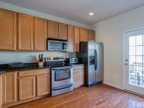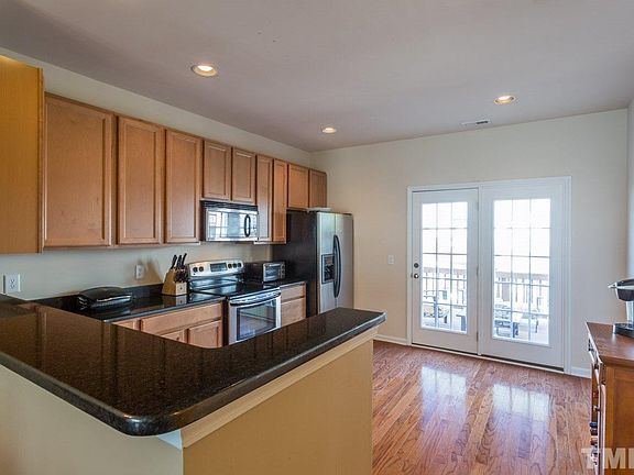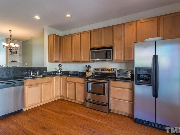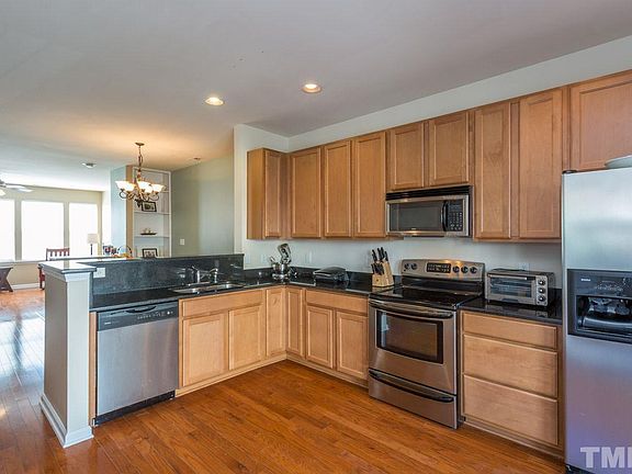 Beautiful Town home in Camden at Cary Park! Covered front porch and deck as well as 1 car garage. Open floor plan on main floor includes hardwoods throughout, separate dining area, large family room with built in bookshelves, lots of natural light, and gas fireplace. Open kitchen features ample cabinetry, SS appliances, and access to deck. All NEW carpet, and interior paint. Third floor- Private master bedroom/bathroom and additional bedroom with full bathroom. Pool in the community. Awesome location!