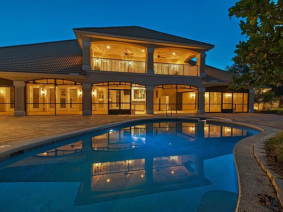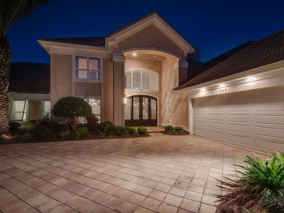 A GOLFER'S PARADISE!! 1 YEAR GOLF MEMBERSHIP to Bay Point Golf club included in the sale of this spectacular home, as well as a VIP membership to Serenity Spa located in Bay Point. This property is truly the premiere home on the Gulf Coast with a 68' x 28' putting green with fringe, 6 hole layout, and 2- 7' x 5' chipping pads surrounded by a large beautifully landscaped yard with a high end Bermuda program. Centered on two lots on the 9th hole of the only Jack Nicklaus Design Golf Course in Northwest Florida, this Bay Point Dragon's Ridge home is a perfect vision of flawless good taste, attention to detail and gracious living. The front door is hand crafted wrought iron and finished in copper patina with hinged glass to let air in. The large 20ft ceiling foyer with marble
