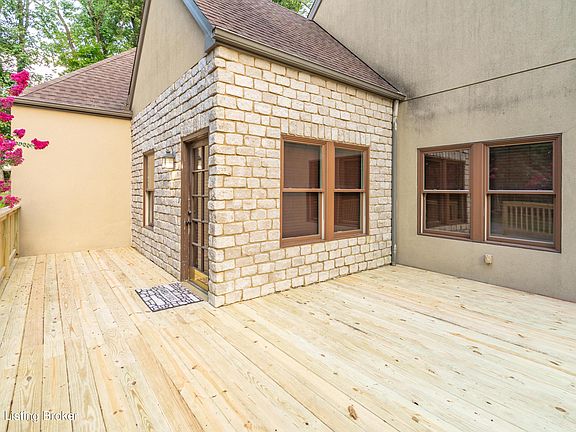 Charming Old World Classic Tudor Style Stone and Stucco nestled on shaded lot. Open Floor Plan with large open vaulted ceiling Great Room with gas fireplace, tile floors, First Floor Main Bedroom Suite with Walk-in Closet Fabulous large soaking tub, separate shower, double bowl sinks. First Floor laundry Room. Upstairs has Two bedrooms sharing full bath and an open sitting area overlooking great room. Surprisingly close to major interstates Bluegrass Pkwy I-65 and conveniences; enjoy the historic town of Bardstown & the world famous Bourbon Trail. Lots of Privacy in Backyard. Hot tub does not work. Front pergola in video has been removed and replaced with brand new deck.