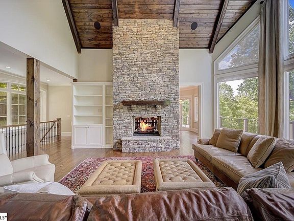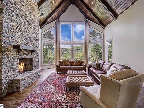 Enjoy true Luxury living in The Cliffs at Mountain Park. In this the newest golf community you are just minutes from Greenville, SC and Hendersonville, NC. You enter into an elegant but relaxed lifestyle in this open floorplan through a beautiful front door to the great room with a vaulted, beamed ceiling and floor to ceiling windows where you get an awesome view of the Lake and Mountain. You will see a beautiful stone fireplace that is open to both the great room and the lovely kitchen! Go from the breakfast room through the door to a stunning upper level deck with a Wolf grill and a powered awning. The gorgeous kitchen is equipped with double wall mounted ovens, a downdraft 5 burner range, microwave and a wonderful refrigerator also a walk-in pantry. There are hardwood floors in the first floor living area, carpet in downstairs bedrooms and tile in all three bathrooms as well as two half baths. Master on the main is such a great retreat including “his and her” closets, with a jetted air tub, a large walk-in tiled shower. On the lower level there are two bedrooms with full baths and a half bath, a wet bar with refrigerator, ice-maker and sink, a wine closet and lower living room which opens to a lower patio. A media room with seating for six and full entertainment system. All furnishings in the home are available for purchase. All appliances including washer/dryer and TVs, home entertainment systems remain. The Generac generator conveys. Membership at The Cliffs is available with the purchase of this home.