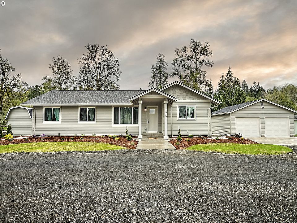 BEAUTIFUL 3 Bedroom/2 Bathroom-- Office/Den-- 1412 Sqft-- 2 Acres w/ Creek-- 1 Level-- NEW CONSTRUCTION-- Great Room-- Living Room w/Fireplace-- Kitchen w/Quartz-Stainless Appliances-Island-- Dining Area-- Master Suite w/Walk-in Closet & Bathroom-- Heat Pump & A/C-- Central Vac-- Vaulted-- Dbl Detached Garage + 2 Sheds-- PLUS Additional Shop/Garage-- New Landscaping-- Patio-- New Well-- New Septic-- Circular Drive-- Minutes to Town