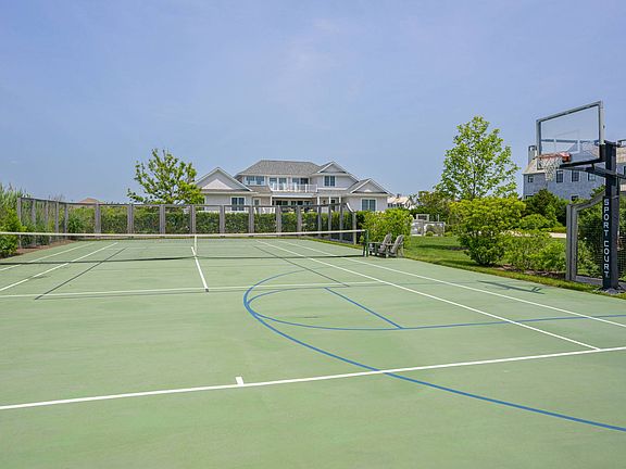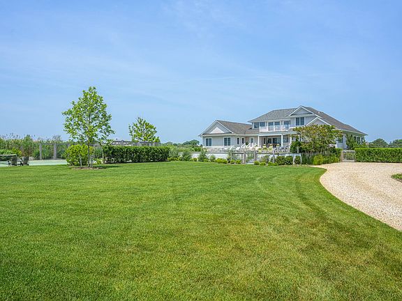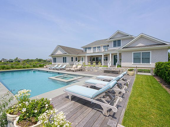 Looking for a luxurious short-term rental with a prime Hamptons waterfront address that is loaded with amenities? 125 Dune Road in Quogue checks all the boxes: a coveted bayfront address with ocean access; an oversized heated gunite pool with spa; an all-weather tennis court, multiple decks; and a boat slip for your boat. The pristine magazine-worthy interior offers various spots for relaxing and entertaining, from the large eat-in chef's kitchen with its adjoining dining area, to the light-filled living room and den with fireplace and wet bar. A screened porch offers additional dining space and a relaxing spot for reading and enjoying the water views beyond the expansive lawn. The large six-bedrooms and six baths are spread out among two guest wings (with two king beds and four queen beds). Upstairs you'll find a hang-out TV space with a full bath, Peleton, pull-out couch (for overflow overnight guests), and bayside and oceanside terraces. The ocean awaits right across the street, thanks to a walkway shared with only one neighbor.