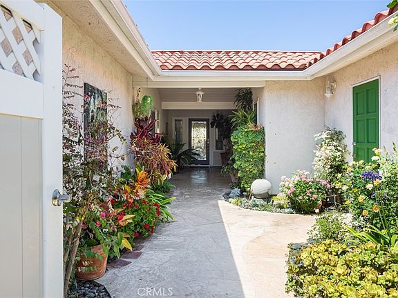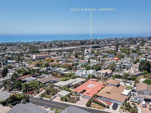 Located in the desirable Southeast enclave of coastal San Clemente, this dialed-in single level home offers a combination of indoor and outdoor space hard to come by. Situated on over 10,000 SF, this massive, desirable lot is primarily flat giving it an extra sense of scale and usability. Over 3,000 SF of level living encompasses four generous bedrooms (most with direct ocean views), three newly remodeled bathrooms and one with a spacious dedicated sauna. Upon arrival, privacy gates lead into tropical covered atrium entry with stone / paver flooring, offering three unique access points. Beautiful wood floors lead to a lovely living room offering fireplace, custom built-ins, vaulted ceilings, and a formal dining area. Adjacent to the living room, a lovely kitchen with upgraded stainless appliances, farmhouse sink, shaker cabinetry, subway tile, skylit island with ample bar seating pairs seamlessly with the family room creating one large great room - a generous and well-appointed place for gatherings. Both living spaces have easy access to a giant, private backyard. A combination of hardscaping, newer horizontal wood fencing, low maintenance turf, a shady custom palapa, pergola, and mature plantings including blood oranges, loquats, mangos, pink lemons, Meyer lemons and Asian pears decorate the yard. A grand primary suite features wrap around walk-in closet, and completely dialed in en suite bathroom with soaking tub, walk-in shower, wood-like tile flooring, dual sinks, quartz counters, all styled with modern fixtures. Truly stunning throughout, this home has so much to offer on one convenient level, interior dedicated laundry room, a great floor plan, ocean views, massive yard, large two-car garage, oversized paver driveway, and vibrant low maintenance landscaping. Ample space for an elevated front patio if desired with major ocean views to the southwest. For those in pursuit of a beachy lifestyle in a desirable and friendly neighborhood, walkable to great restaurants, nearby great beaches and 2.5 mile beach trail, world class surfing at Trestles a bike ride away, and San Clemente’s historic downtown, this is a very nicely updated and turnkey home!