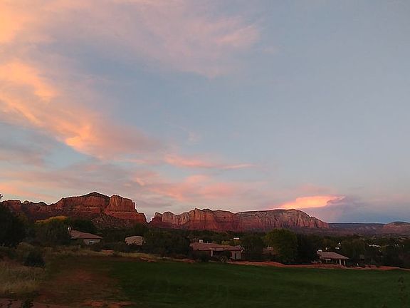 Semi-Custom Home with Gorgeous Panoramic Red Rock Views on 13th Fairway of Sedona Golf Resort! 3BR/3BA/2 Car Garage, 2379 Sq. ft. Beautiful Tuscany style interior. Ceramic tile throughout open areas with Forbo non-toxic marmoleum in office and bedrooms. Spacious master bedroom with 2 sitting areas. Exceptional white cabinets, granite counter tops, GE Monogram Refrigerator, Plantation Shutters and Levelor Blackout Cellular Shades. Custom tile in bathrooms. Backyard has extended flagstone patio, built-in BBQ, gas firepit, in-ground spa, built-in island, 1" Sedona Red Rock with planting area, landscape drip system, mature landscaping. Close to shopping and hiking trails.