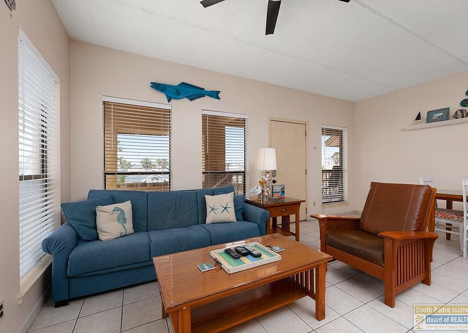 Very nice 1-bedroom, 1-bath condo with a bonus area featuring built-in bunk beds. The bedroom has a queen bed, and the built-in bunks provide extra sleeping space for your guests. The unit comes fully furnished and includes two TVs AND - best of all - a washer and dryer inside the unit! In-apartment laundry is hard to find on the island, so convenient! Located on East Retama St, this 3rd-floor condo sits in a 6-plex just a short distance from the beach, restaurants, and shopping. Assigned parking and there is also a small backyard area, perfect for private lounging, BBQs, or soaking up the sun. Utilities included in the rent are Water, Cable, Internet, and Wi-Fi - you only pay for electric. A great, centrally located spot on the island!
