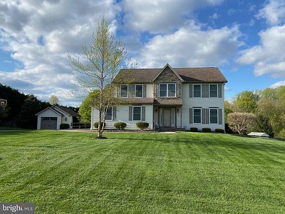 This 2nd owner home is nestled in a quiet neighborhood with easy access to Maryland by PA 97. This 2 story Colonial has 4 bedrooms, 2 ½ baths, all bathrooms being updated in the last 6-7 years. The main level includes hard wood floors, a large eat-in kitchen with lots of beautiful oak kitchen cabinets complete with granite countertops, and a center island with bar and electric. The main level also includes a living room, formal dining room with nearby pantry, large family room with stone wall natural gas fireplace. The mudroom includes laundry area thru a finished 2 car attached garage with insulated doors and an epoxy floor, also included is an additional 12’ x 15’ 1 car detached garage. The open oak stairway will lead you to 4 bedrooms. The primary bedroom features hardwood floor, Hunter Douglas blinds, a large walk in closet and beautiful tile finished full bathroom, guest bathroom updated as well. The lower level has a finished Rec. room with walk out level basement. The home is heated by a natural gas 90 plus Ruud FHA furnace which includes an electric air cleaner, Humidifier, Central air. Also included is a G.E. 200 AMP electric box with a 100 AMP sub panel, and AO Smith tankless water heater. The 12’6” x 18’ screened in rear porch has a nice view, privacy, ceiling fan and rolling blinds. The property is nicely landscaped with fenced in back yard containing mature Leyland Cypress and pine trees maximizing privacy. There is also a 13’6 x 16’ rear paver patio w/ fireplace, a 10’ x 12’ paver patio area, and 8’ x 10’ Shed. The front of the property has a 5’ x 11’ covered front porch and paver patio front side walk. IMPORTANT NOTE: See list of 12 upgrades on Seller’s Disclosure form page 3 (#8), Continued onto page 4 and attached sheet per line 173. INCLUDED: Kenmore Elite Stainless-steel appliances: French Door Refrigerator, Natural gas Range/Oven, Built-in Microwave, Built-in Dishwasher, LG Electric Dryer, LG Washer, Hunter Douglas blinds and all other Window Treatments, Blinds and Curtains, Home warranty