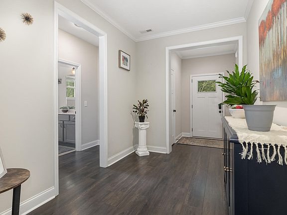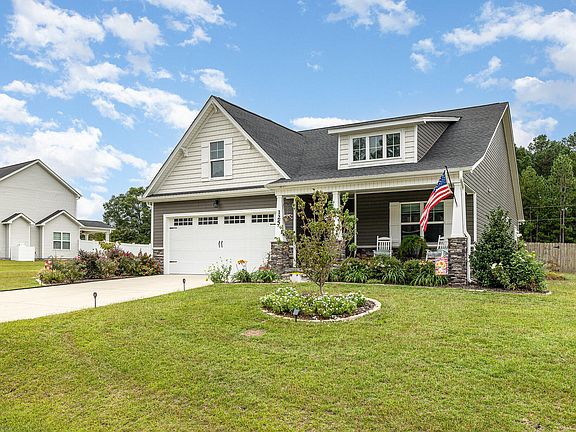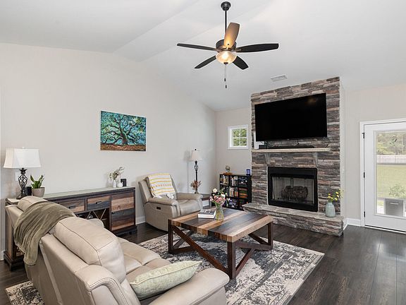 Welcome to 125 Edgefield Drive, a 2021 beautifully-maintained 3-bedroom, 2.5 bathroom, one level home in the Woodbury Farm subdivision. Featuring an open-concept layout with a spacious living room complete with vaulted ceilings and a floor to ceiling stone fireplace. All opens up to the kitchen equipped with a walk-in pantry, subway tile, granite counter tops, and stainless steel appliances. Enjoy a custom mudroom entry from the garage that meets a powder room and laundry room with utility sink and room for folding, storing and organizing. The garage features a smart car plug for electric vehicles and ample shelving. The primary suite includes tray ceilings, an oversized bathroom with dual vanities and closets. Two additional bedrooms provide flexibility for various needs with spacious closets. Enjoy outdoor living sitting on your covered front or back porch, custom low-maintenance landscaping, raised bed gardens, a privacy fence and like-new storage shed.
