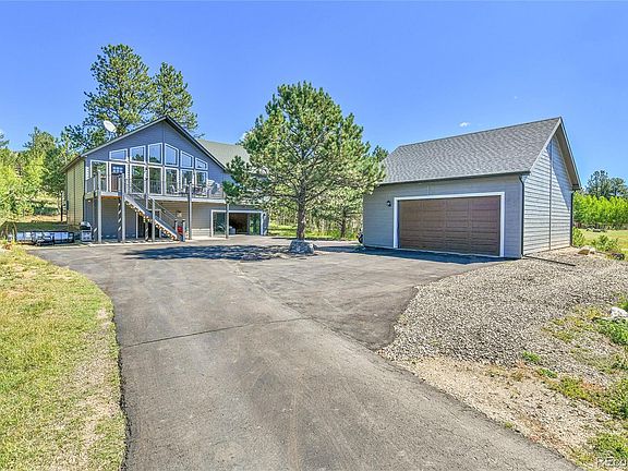 Welcome home to this raised ranch in sought-after Elk Creek Highlands! This exceptional 3-bed, 3-bath home features a spacious main floor primary suite with a five-piece bathroom and a large walk-in closet. The open and inviting living, dining, and kitchen areas showcase tall vaulted ceilings, large windows framing mountain views, and recently refinished oak floors. The brand-new kitchen is a showstopper, complete with new cabinets, new quartz countertops, and a waterfall island. A second family room provides plenty of space for entertaining and endless light with large sliding glass doors. The exterior complements a brand-new oversized 2-car garage. Step outside onto either of your two decks—one bathed in sunlight at the front, and another overlooking an Aspen grove in the backyard. Additional perks include two sheds for storage and community amenities such as horse stables and a stocked lake. Experience mountain living at its finest, with numerous nearby hikes and easy access to the national forest. Make this Elk Creek Highlands home your sanctuary!
