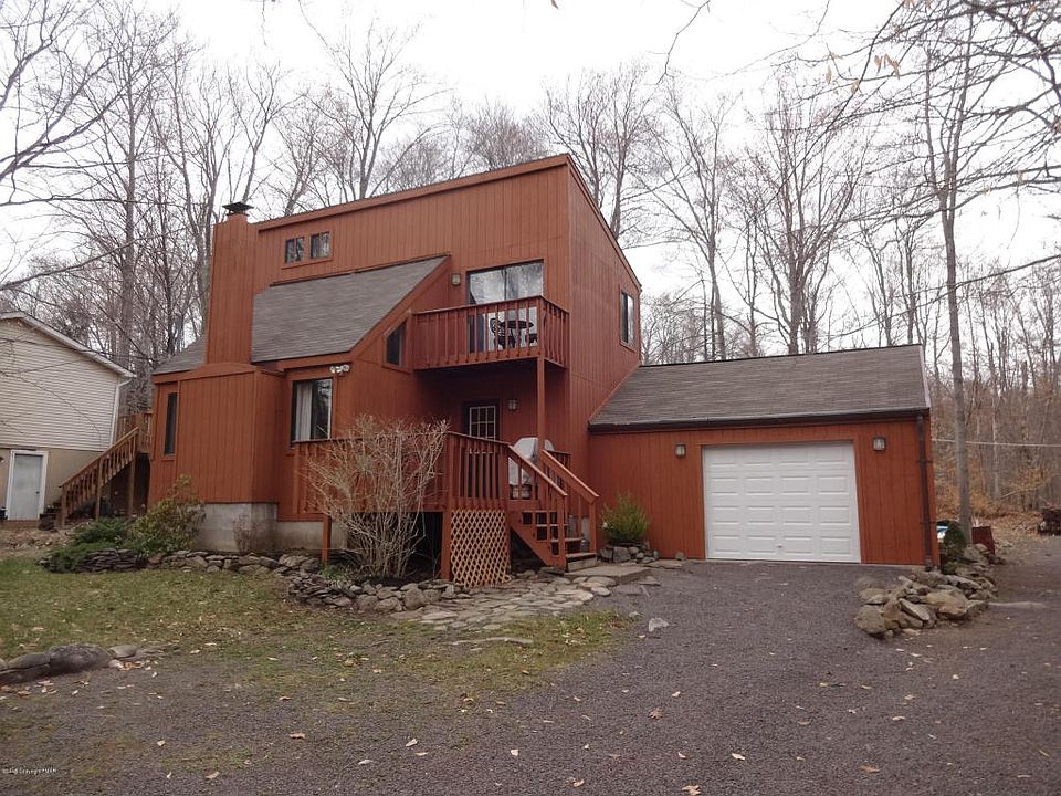 Well-kept contemporary home BACKING UP TO THE GAMELANDS. This bright and airy home has a one-car garage and a huge family room. 3 bedrooms, 1 1/2 baths and living room with fireplace. Stainless appliances. North Pocono Schools.
