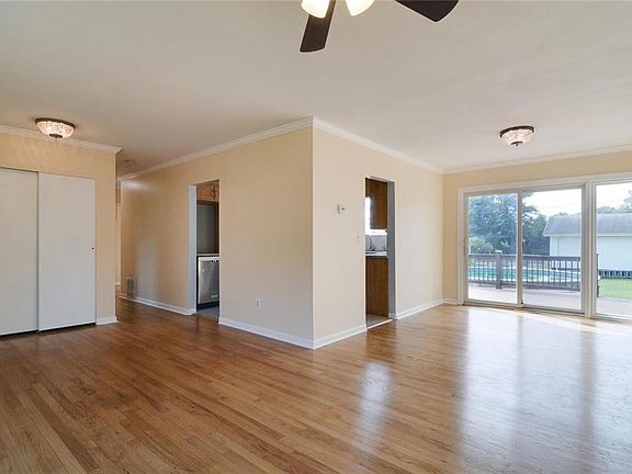 Beautiful Ranch completely remodeled. As you approach this home there is a wide 2 car driveway. The generous yard features a laminated deck for entertaining with a large above ground pool. Through the front door notice the gleaming hardwood floors, newer windows, freshly painted and crown molding throughout. Off the living/dining room gain access to the kitchen with shiny stainless steel appliances, newer cabinets and Corian counter-tops. Through the kitchen we go and access 3 bedrooms also with gleaming hardwood floors and crown molding. Off the hallway the bathroom has been completely renovated with new ceramic fixtures and lighting. Back through the kitchen and to the fully finished basement with new floors, crown molding, doors and fresh neutral paint to open up this spacious recreational room. Down the hall the bonus room can be used for your home office or a guest room with access to the 2nd full bath also completely renovated.