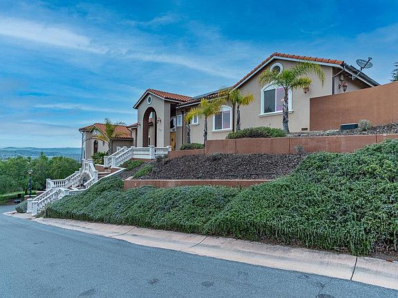 Nestled on a private street with panoramic mountain views, this lovingly maintained Mediterranean home is filled with custom features. The grand entrance welcomes you to vaulted ceilings, travertine flooring, custom cabinets, wood burning fireplace, and office. The heart of the home is the chef's kitchen with high-end stainless-steel appliances, large walk-in butler's pantry, with an abundance of storage. The impressive family room/kitchen boasts soaring ceilings, panoramic views from every window, designed for grand scale entertaining. The unique 4-bedroom retreat has beautifully appointed custom finishes, all with their own bathrooms. The welcoming backyard includes a resort like pool, spa, pool house with separate full shower, BBQ area, basketball and bocci ball courts and more. Potential for secondary unit, with already finished full bathroom, extra storage, laundry hookups, just waiting to be completed. If you're looking for peace and serenity on over an acre, look no further.