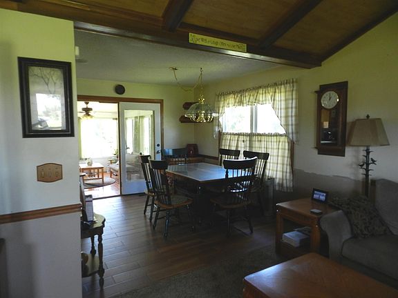 3 bedroom, 2 bath home in the country on 1 acre lot with the conveniences of the city. Cathedral ceiling and exposed beams in great room. 24 x 32 detached garage. Property SOLD AS-IS.